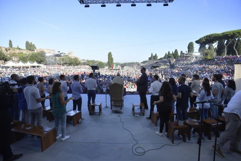 Augusztus 11-én, szombat este mintegy százezer olasz fiatal tartott imavirrasztást a római Circus Maximusban, két hónappal az „ifjúság, hit és hivatástisztázás” témájának szentelt püspöki szinódus előtt. A Szentatya szokásához híven most is párbeszédet folytatott a résztvevőkkel.