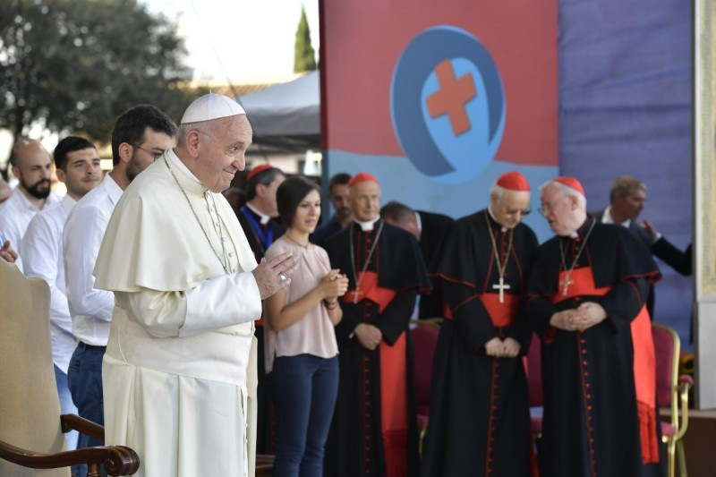 Kedves barátaim, útnak indultatok, és eljöttetek erre a találkozóra. És most az az öröm tölt el engem, hogy érzem: szívetek a Jézus iránti szeretettől dobog, mint Mária Magdolnáé, Péteré és Jánosé. És mivel fiatalok vagytok, én Péterhez hasonlóan örülök, amikor azt látom, hogy gyorsabban futtok, úgy, mint János, szívetek ösztönzését követve, mely fogékony az álmaitokat vezérlő Lélek hangjára. Ezért azt mondom nektek: ne elégedjetek meg a sor végére beálló, megfontolt ember lépésével. Ne elégedjetek meg a sor végére beálló, megfontolt ember lépésével! Bátran meg kell kockáztatni az előrelendülést, a félelem nélküli nekirugaszkodást, hogy merjetek álmodni és megvalósítani, mint Jézus Istennek az országát, és merjetek egy testvériesebb emberiségért dolgozni. Testvériségre van szükségünk: kockáztassatok, menjetek előre!