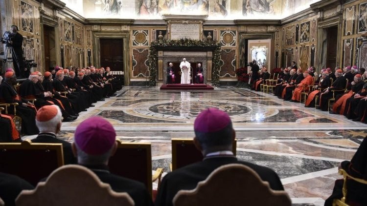 A karácsony azt bizonyítja, hogy az egyesek által elkövetett súlyos vétkek sosem tudják elhomályosítani mindazt a jót, amit az Egyház ingyenesen tesz a világban. A karácsony megadja azt a bizonyosságot, hogy az Egyház valódi ereje és mindennapi, sokszor rejtett munkánknak az ereje – mint amilyen a kúria munkája, ahol szentek vannak – a Szentlélekben van, aki a századok folyamán vezeti és védelmezi az Egyházat, a bűnöket a megbocsátás alkalmaivá, a bukásokat a megújulás alakalmaivá, a rosszat pedig a megtisztulás és győzelem alkalmaivá teszi.
